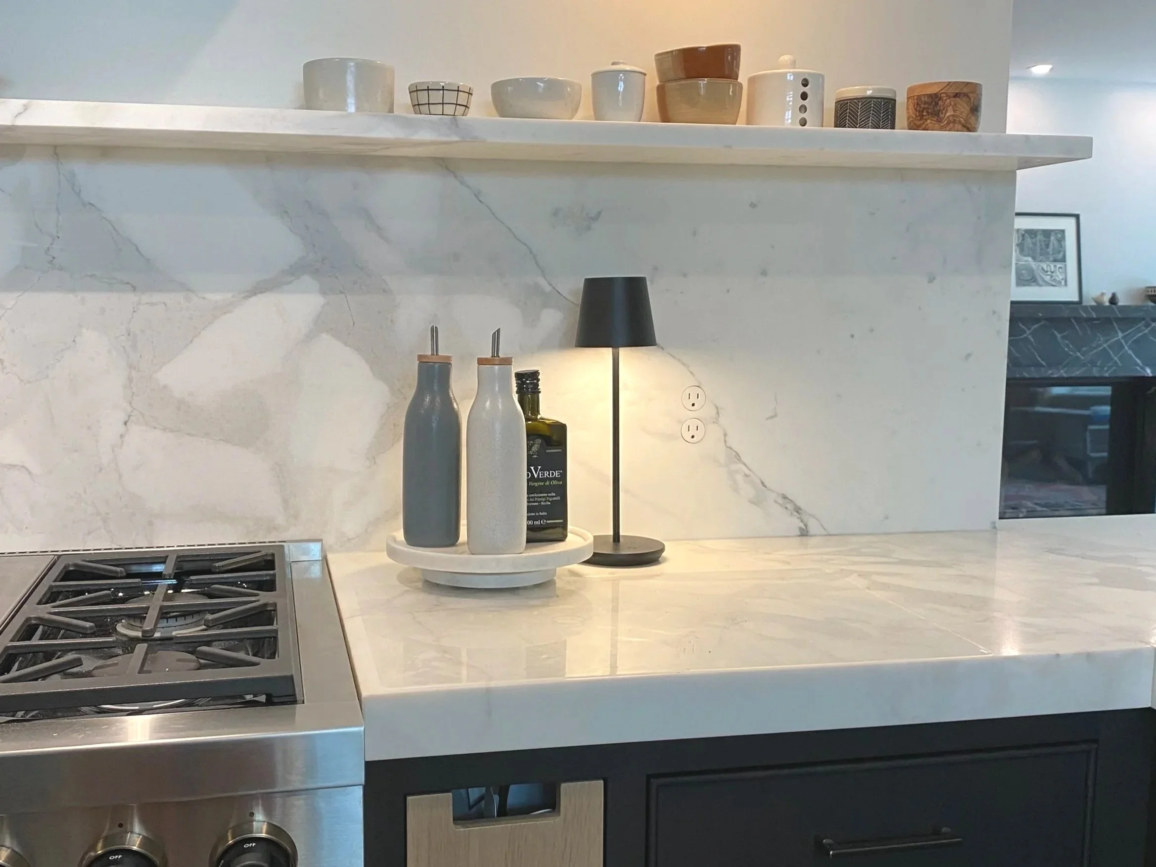 At Ducy Design, we approach outlet visibility with the same precision and intention as we do any other design element. In a recent kitchen project, we faced the challenge of outlet placement along a full-height stone backsplash. Rather than disrupt the clean lines and natural veining, we carefully aligned the outlets with the stone’s pattern, selecting faceplates that blended seamlessly with the material. The result was a cohesive, uninterrupted surface that was visually subtle but fully functional.