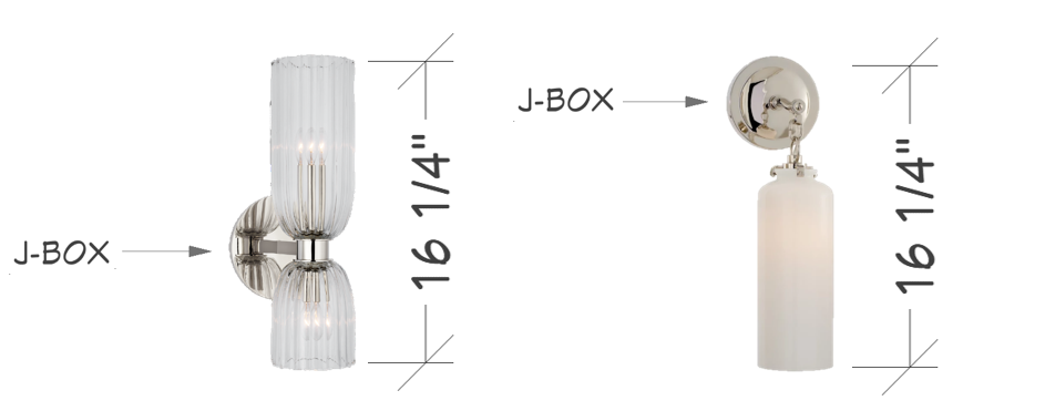 However, on wall sconces, the j-box height and the fixture's center are not the same. It is crucial to have all wall-mounted fixtures selected before the project begins so that you can accurately measure where your sconce should go.