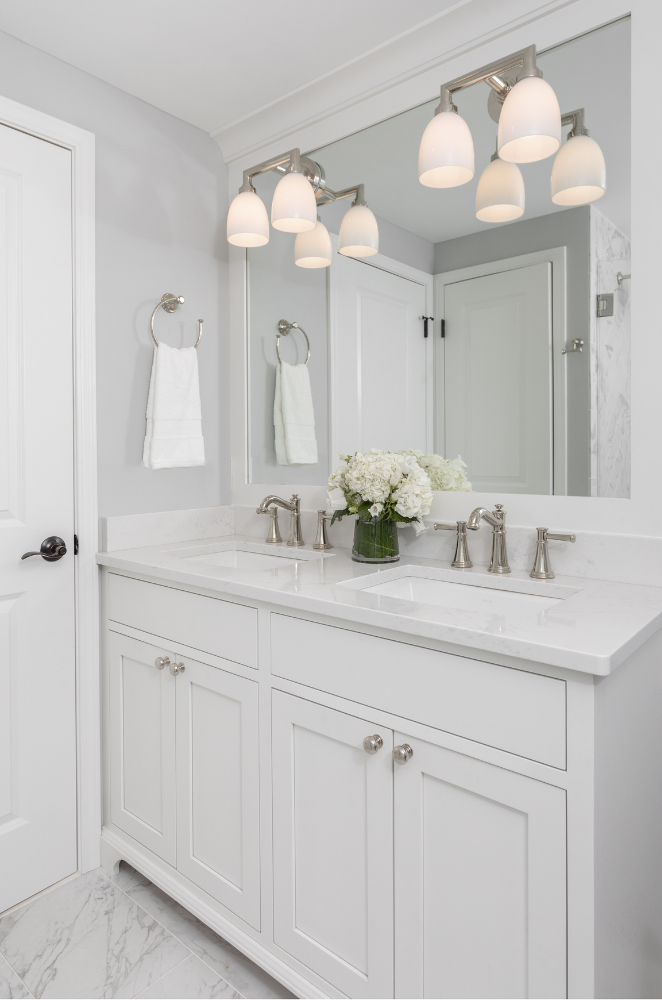 “Our preference is always to go with sconces on either side of the mirror if space permits within the bathroom. It is an ideal lighting situation as it cancels all your shadows when combined with overhead lighting.”